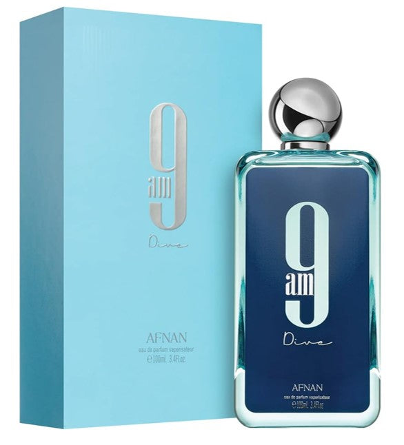 9am Dive de Afnan es una fragancia de la familia olfativa Aromática Acuática para Hombres. Las Notas de Salida son limón (lima ácida), menta, grosellas negras y pimienta rosa; las Notas de Corazón son manzana, cedro y incienso; las Notas de Fondo son jengibre, sándalo, jazmín y pachulí.